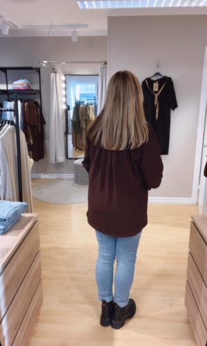 Prickig blus. Fin blus med en liten puff på axeln. Polokrage samt två knappar i nacken. Blusen du bär både till jobb och fest, fin till både finbyxa och kjol samt jeans. Passar bäst 36-42
