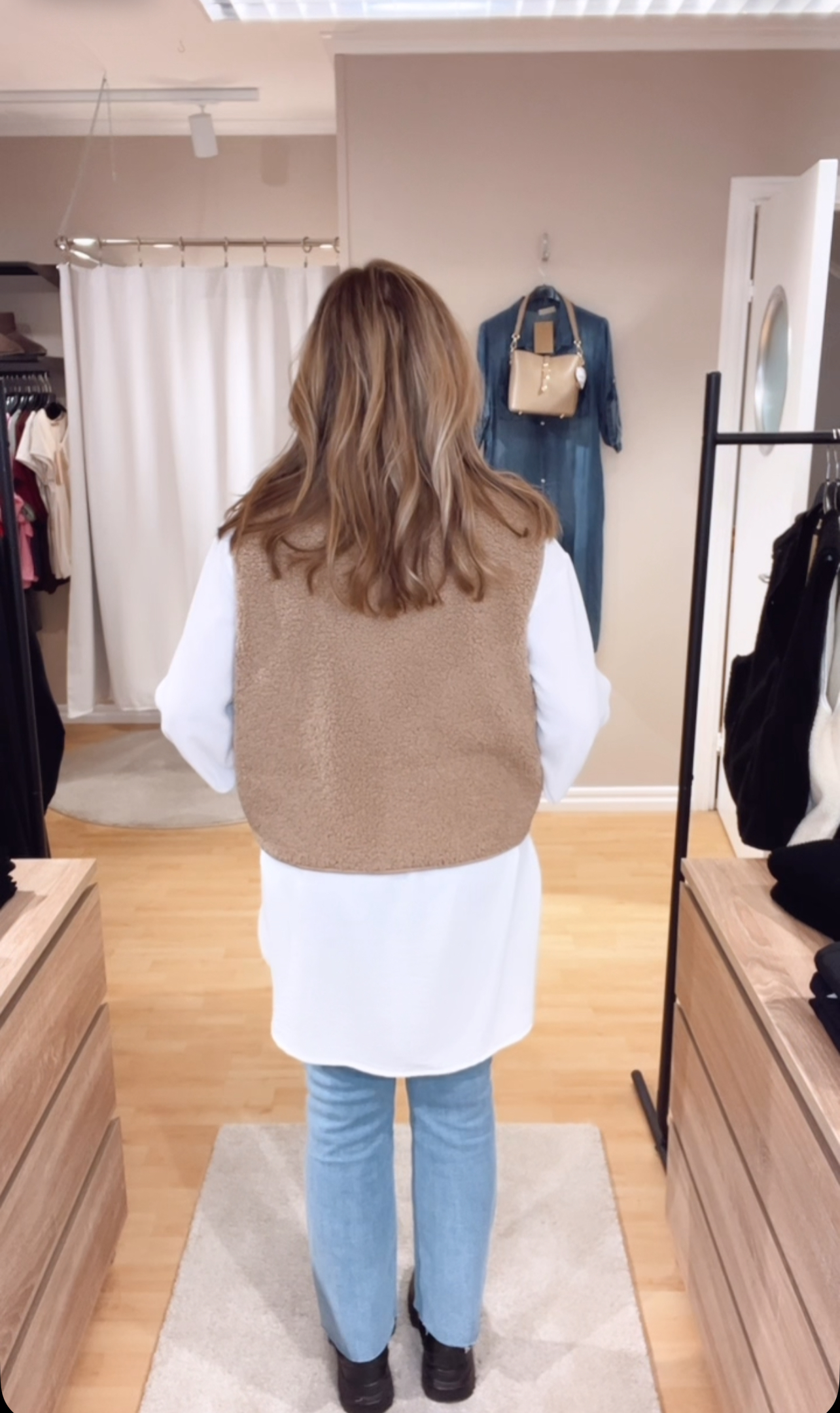 Beda väst, så fin och användbar väst. Knappar hela vägen ner, inte så lång. Se mått nedan. Passar till alla tillfällen, denna bär du inne på ett kalt kontor eller ute med stickad tröja under. Snygg även över en klänning. Superbra väst:)