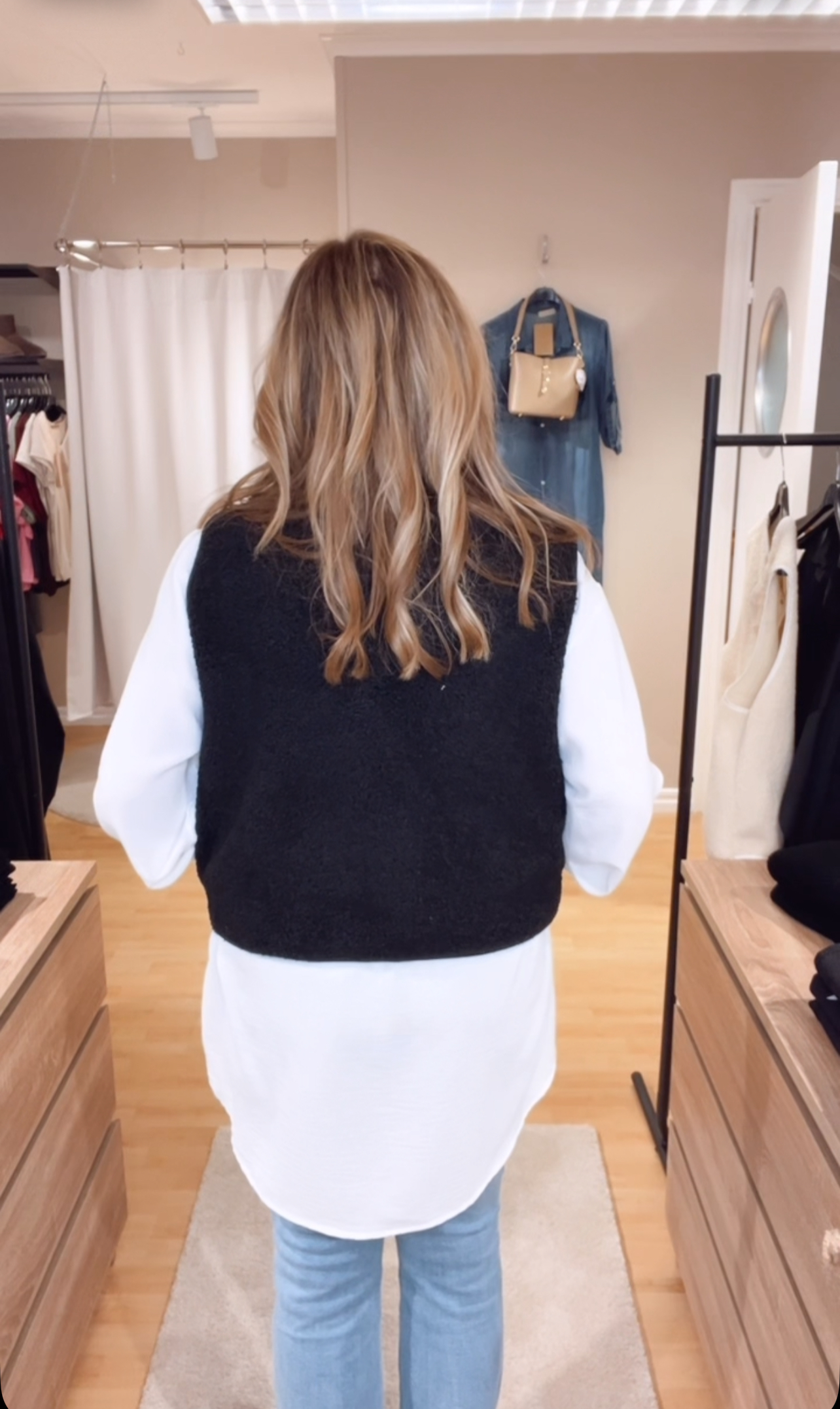 Beda väst, så fin och användbar väst. Knappar hela vägen ner, inte så lång. Se mått nedan. Passar till alla tillfällen, denna bär du inne på ett kalt kontor eller ute med stickad tröja under. Snygg även över en klänning. Superbra väst:)