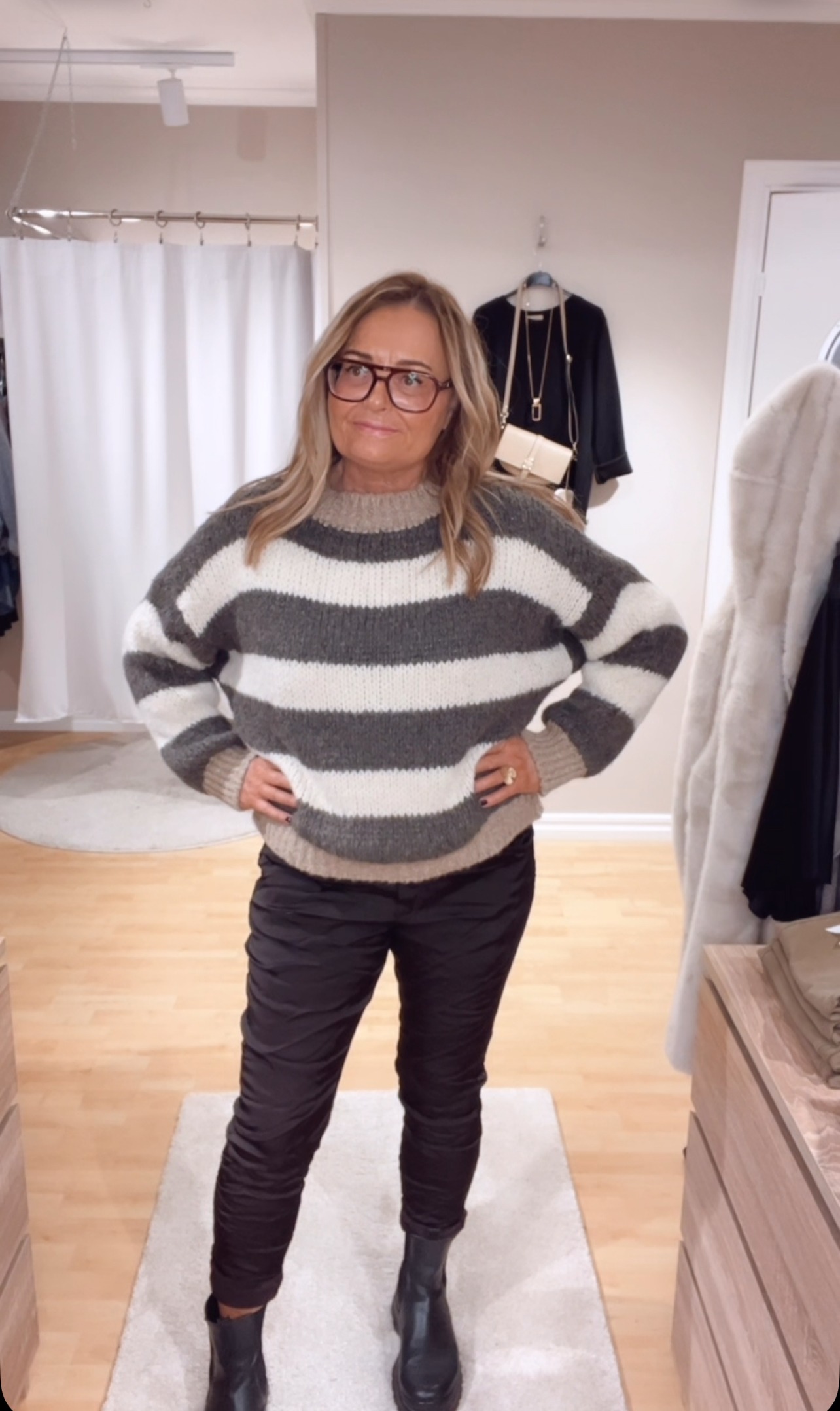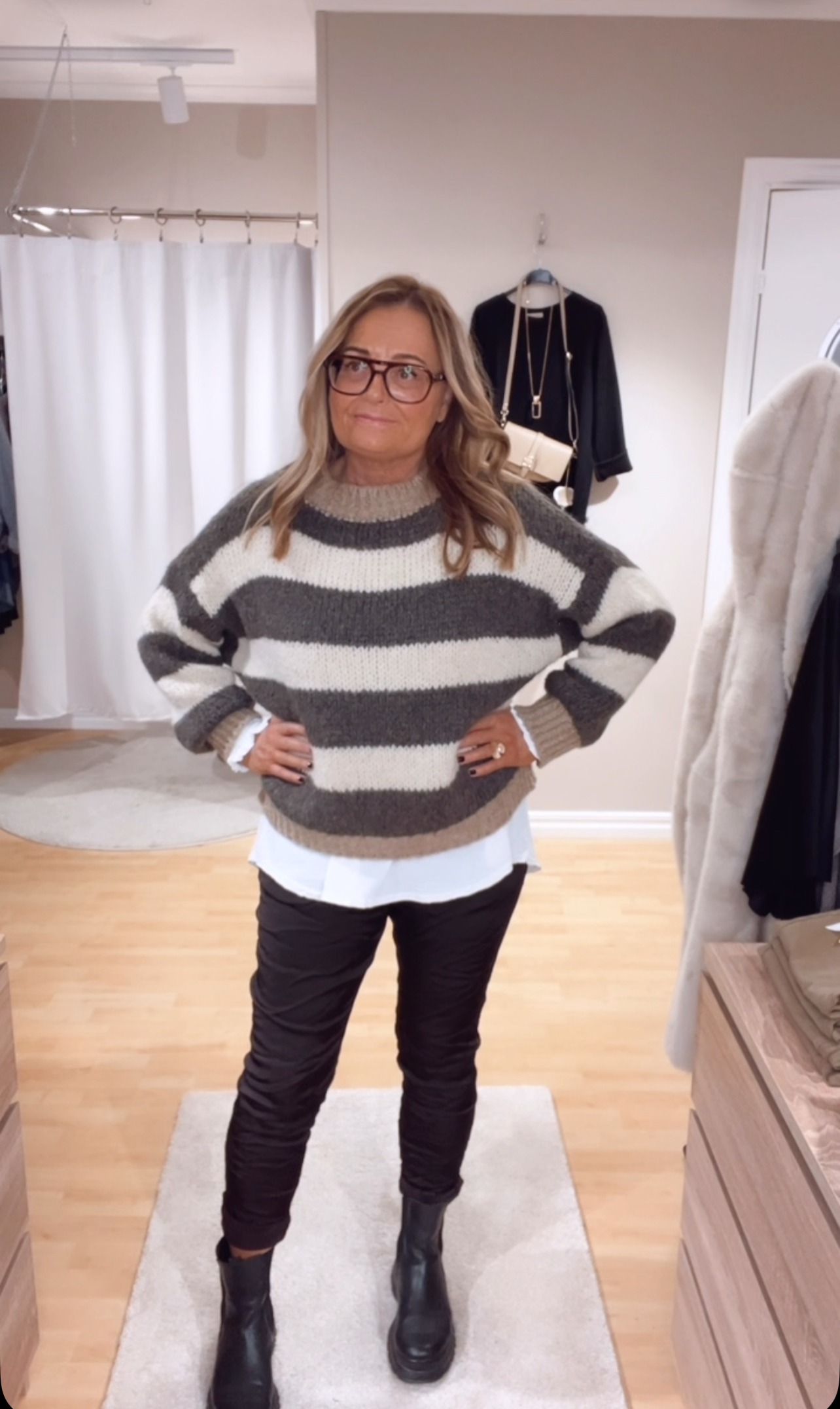 Eden tröja, Brun. Stickad mysig One Size tröja. Fin att bära med bara ett linne under, men även över en skjorta. Vendela blus är fin att sätta under tröjan. Passar både till bruna och svarta toner samt jeans.