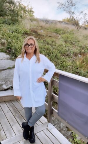 Hedda topp, härlig topp med v-hals och volang runt ärmen. Denna toppen bär du året om. Bra att ha under stickat eller kavaj i höst-vinter. Underbar på sommaren. Här bär jag L/XL då jag vill ha min lite större. S/M passar och bra men blir då en mindre modell, mer finklätt kanske:)