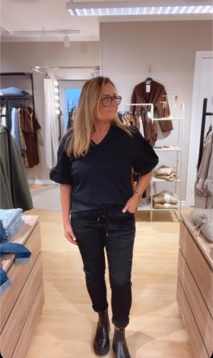 Hedda topp, härlig topp med v-hals och volang runt ärmen. Denna toppen bär du året om. Bra att ha under stickat eller kavaj i höst-vinter. Underbar på sommaren. Här bär jag L/XL då jag vill ha min lite större. S/M passar och bra men blir då en mindre modell, mer finklätt kanske:)