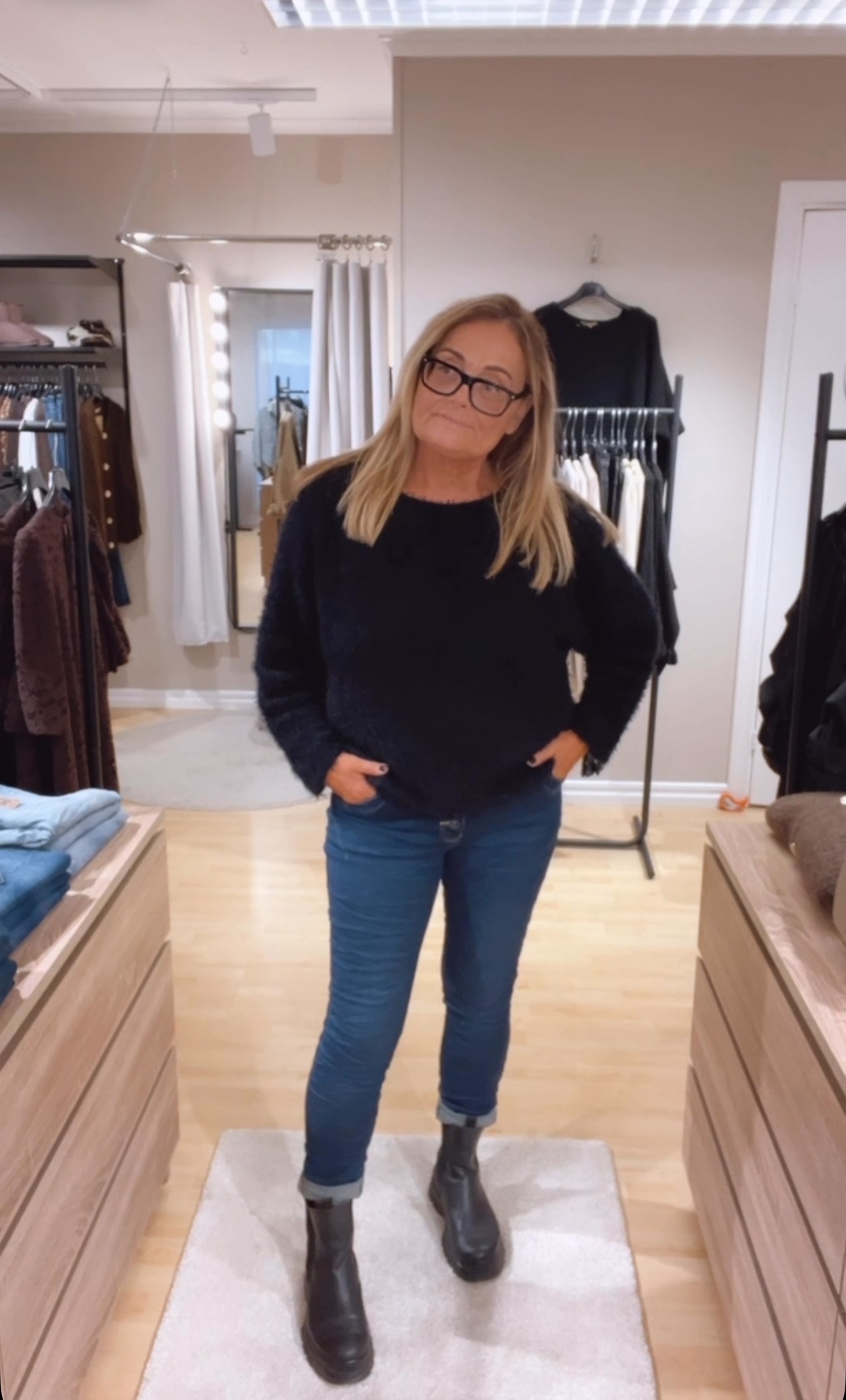 Karin stickad tröja, otroligt mjuk och härligt fluffig tröja i absolut gosigaste kvalitet du kan tänka dig. Lite tyngd i denna tröjan så den är ej sladdrig eller lös i stickningen. Denna tröjan bär du året om. Snygg med blus eller bara ett linne under. Jag på bild bär L/XL just nu, Kan även ha S/M men såhär blir den lite mer OverSize och lite längre. Se mått nedan, lite nättare i modell.
