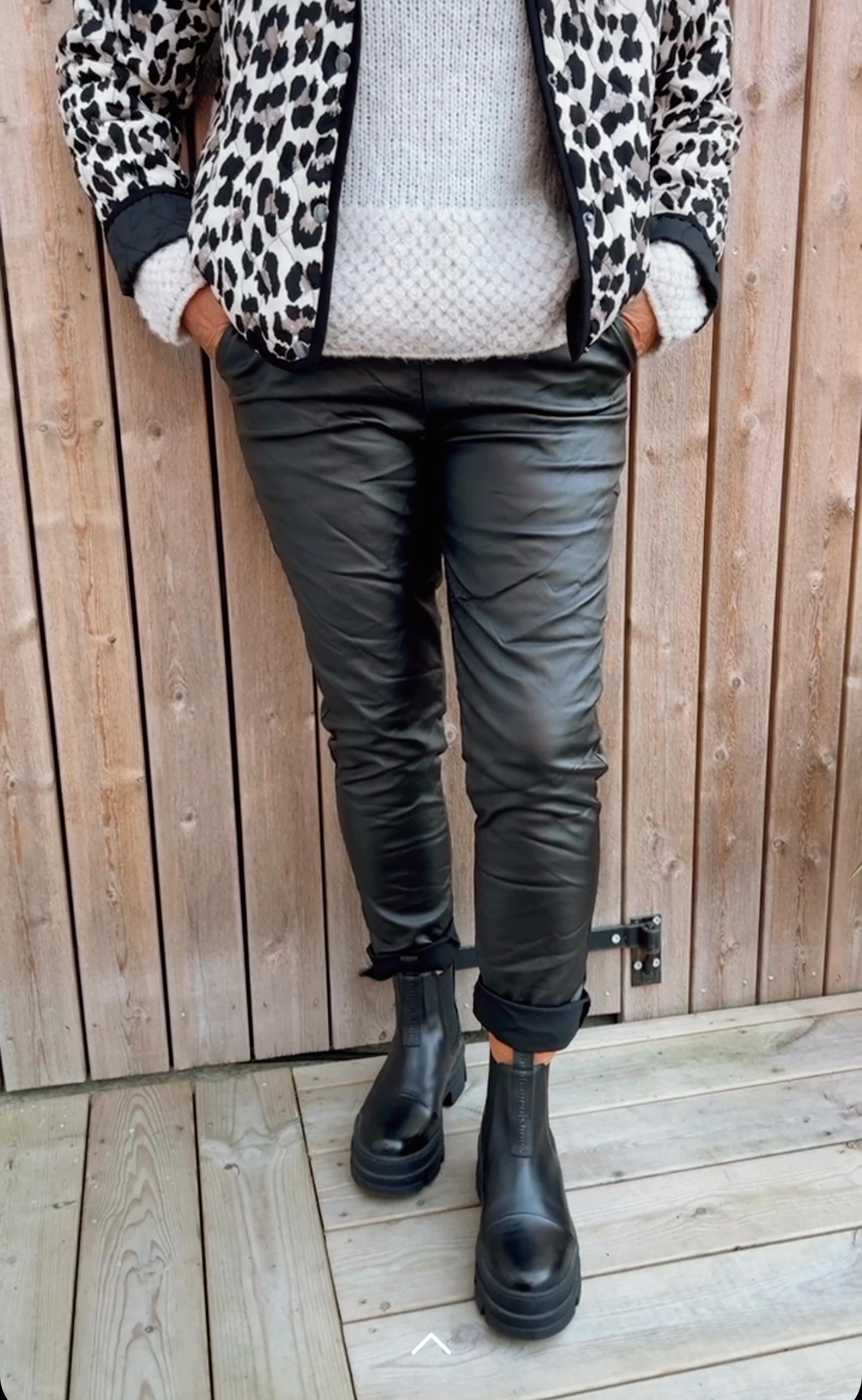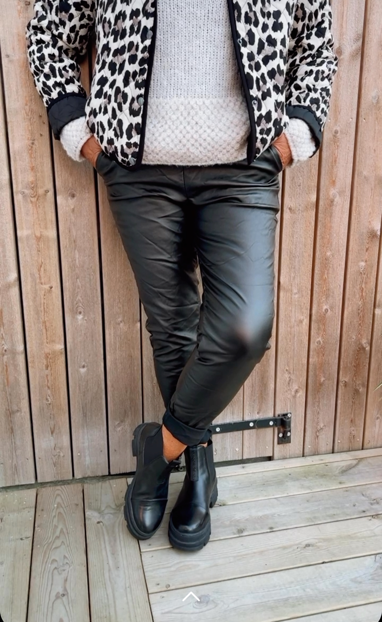 Magisk byxa, finns ingen skönare och mer härlig stretchig byxa:)) Riktiga fickor fram, ingen bakficka på denna modell. Resår i midjan, du bara drar på dem, ingen jobbig linning som sitter åt. SÅ sköna i viscose kvalitet. Blir väldigt coolt att sätta denna byxan till både klänning, blus och stickat till alla fester. Sköna snygga byxor att bära, som definitivt höjer din outfit.
