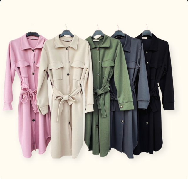 Milano, Stretchkappa, sydd i ett följsamt material med elegant fall. knappar och skärp. Den stilrena siluetten kombineras med en klassisk design som gör den lika användbar till vardags som till mer uppklädda tillfällen. Perfekt för kyliga vår sommar och höstkvällar – bekväm och tidlöst snygg. Går att bära som klänning med strumpbyxa och grova kängor till eller öppen som en lång kofta:) Taupe ser du på mig först i filmen, syns ej på produktbilden:) Kappan i Rosa hittar du i eget produktinlägg.
