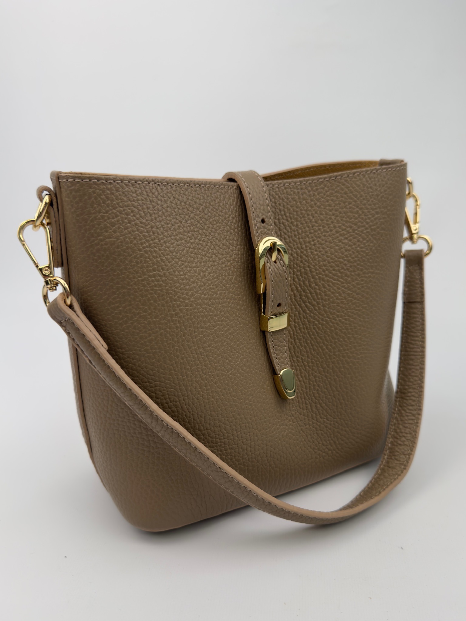 Skinnväska, Beige och Svart. Superfin och användbar väska. Fina gulddetaljer och innerfack. Se bilder i produktgalleriet, samt film för mer info om väskan. Kommer med både en kort och en lång rem, går att bära crossbody.